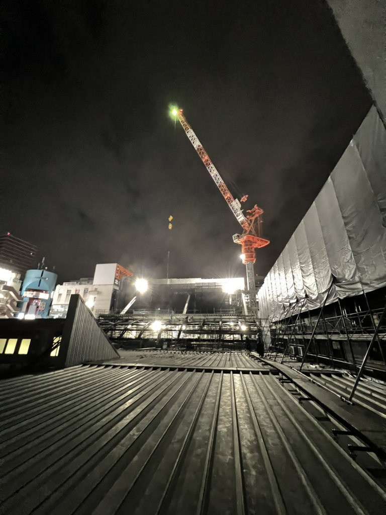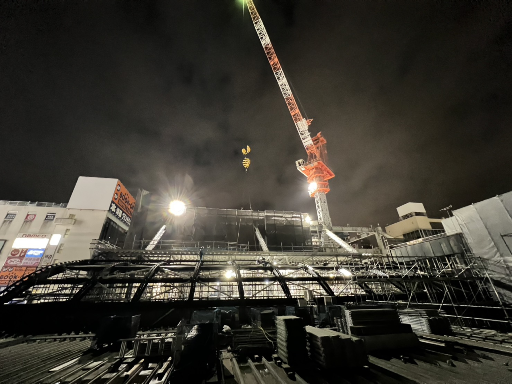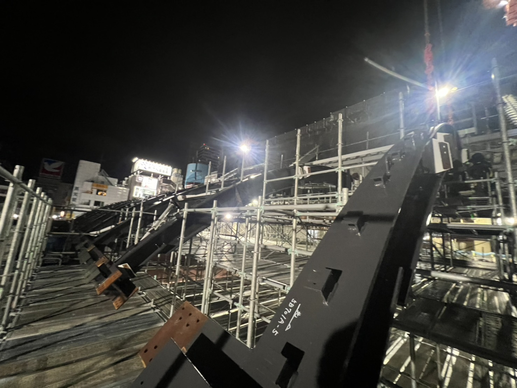 橋上駅舎新築工事に伴う鉄骨組立工事状況